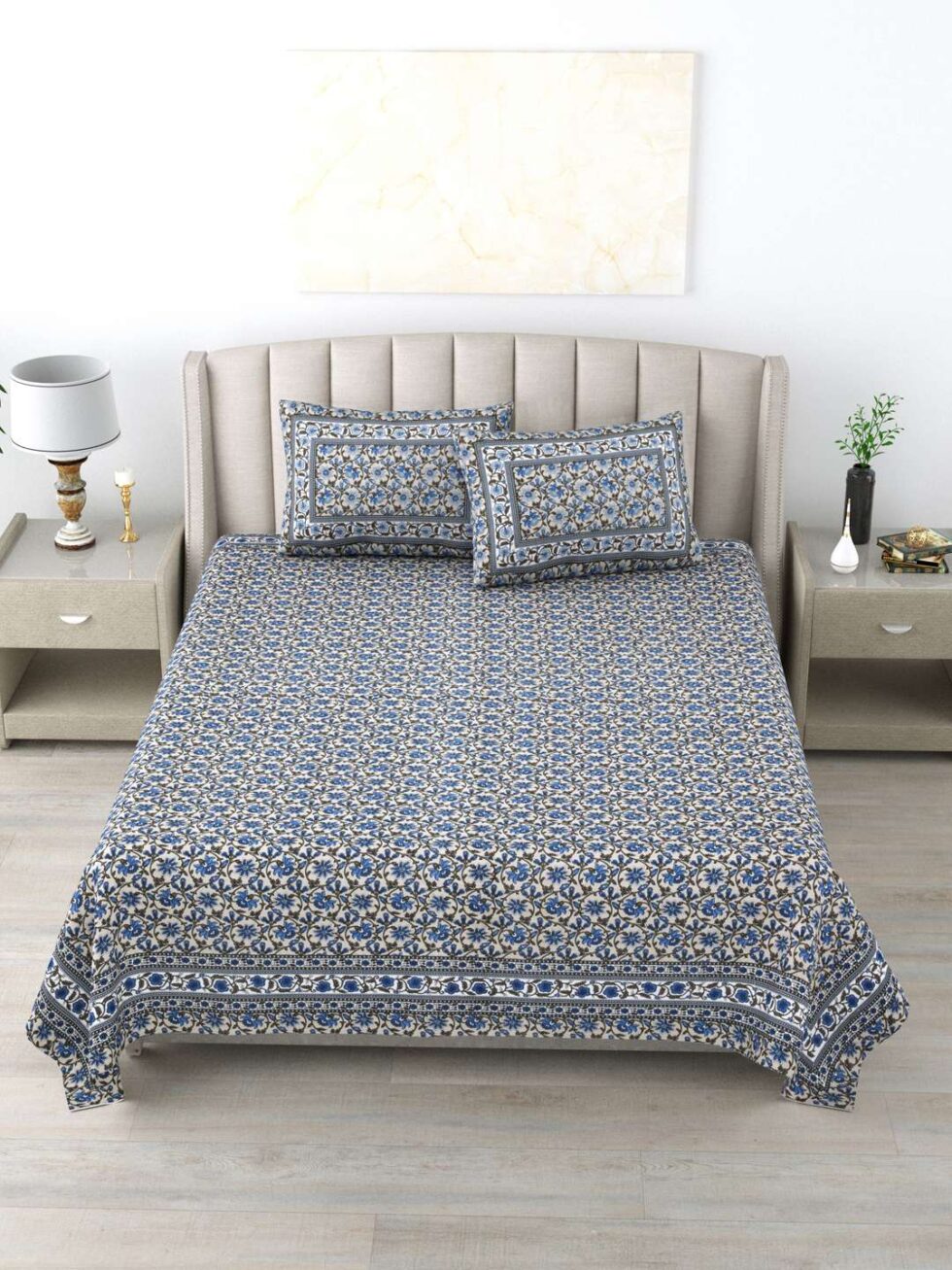 100% Pure Cotton Traditional Printed Bedsheet for Double Bed King Size Bedsheet with 2 Pillow Covers